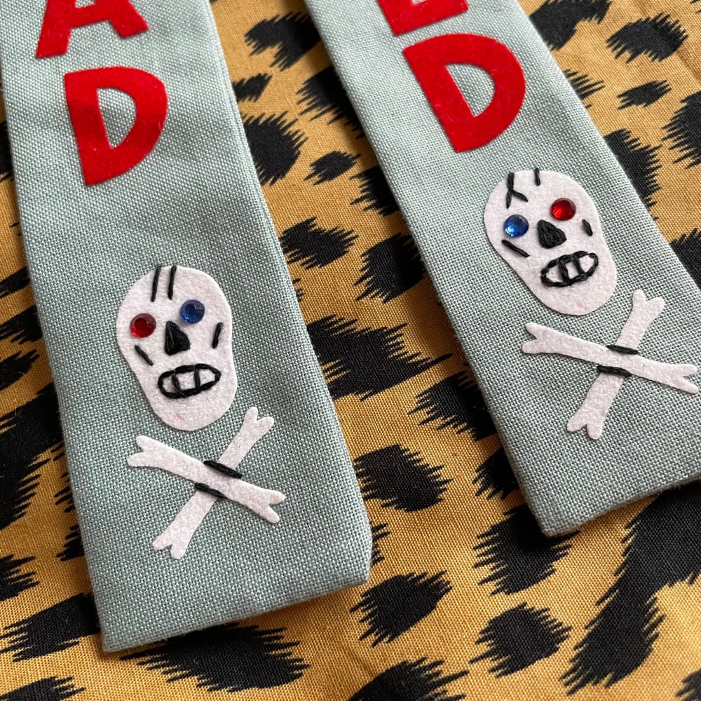 Western tie with transfer, embroidered and rhinestone details. Pin back. Ties are handmade in Brighton from start to finish.