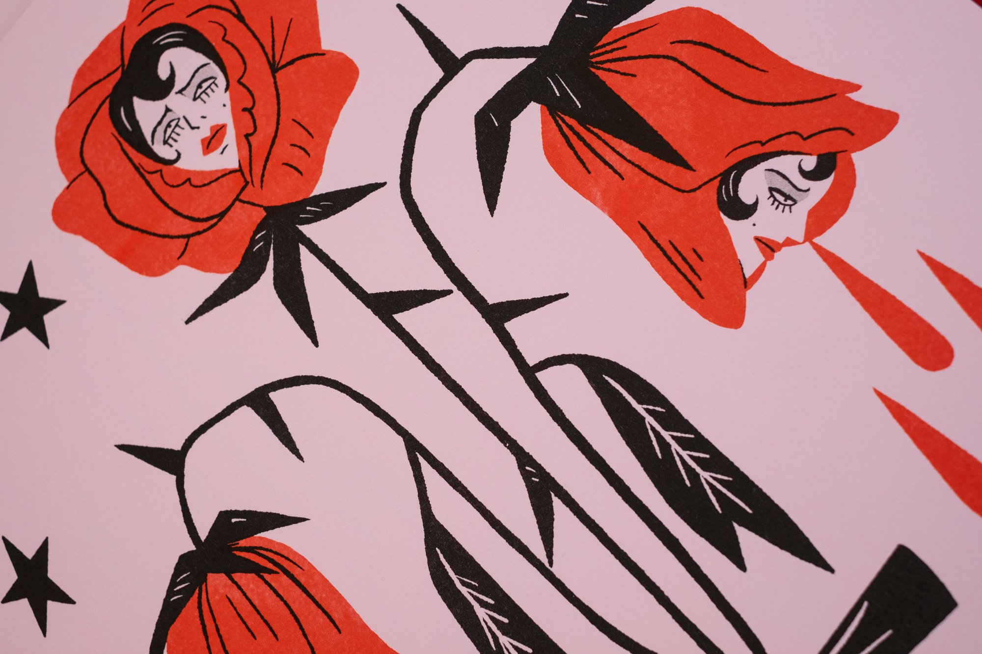 A3 risograph print on unbleached & 100% recycled pink paper stock, printed in Brighton by Dopple Press.