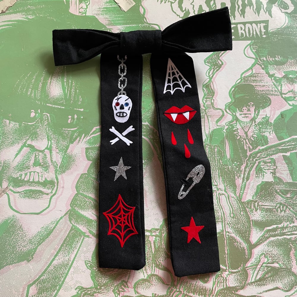 Western tie with transfer, embroidered and rhinestone details. Pin back. Ties are handmade in Brighton from start to finish.