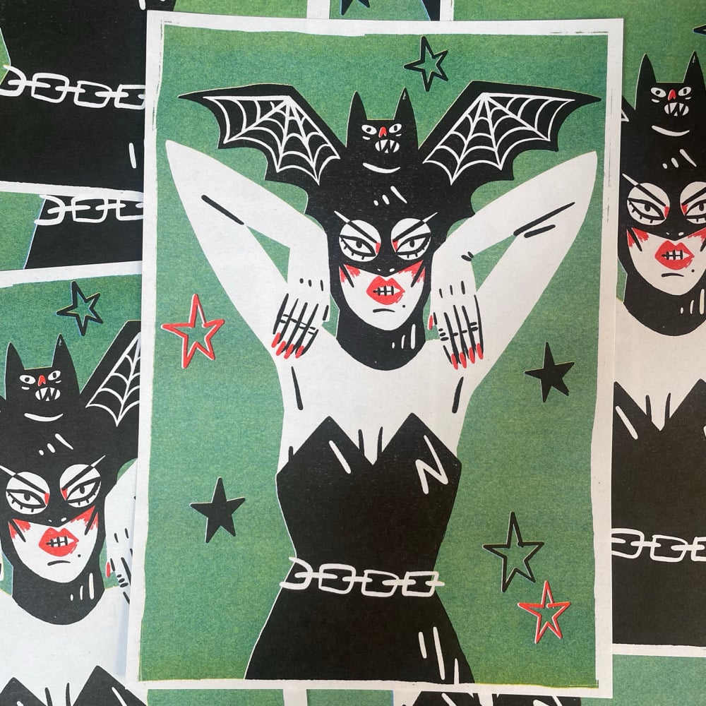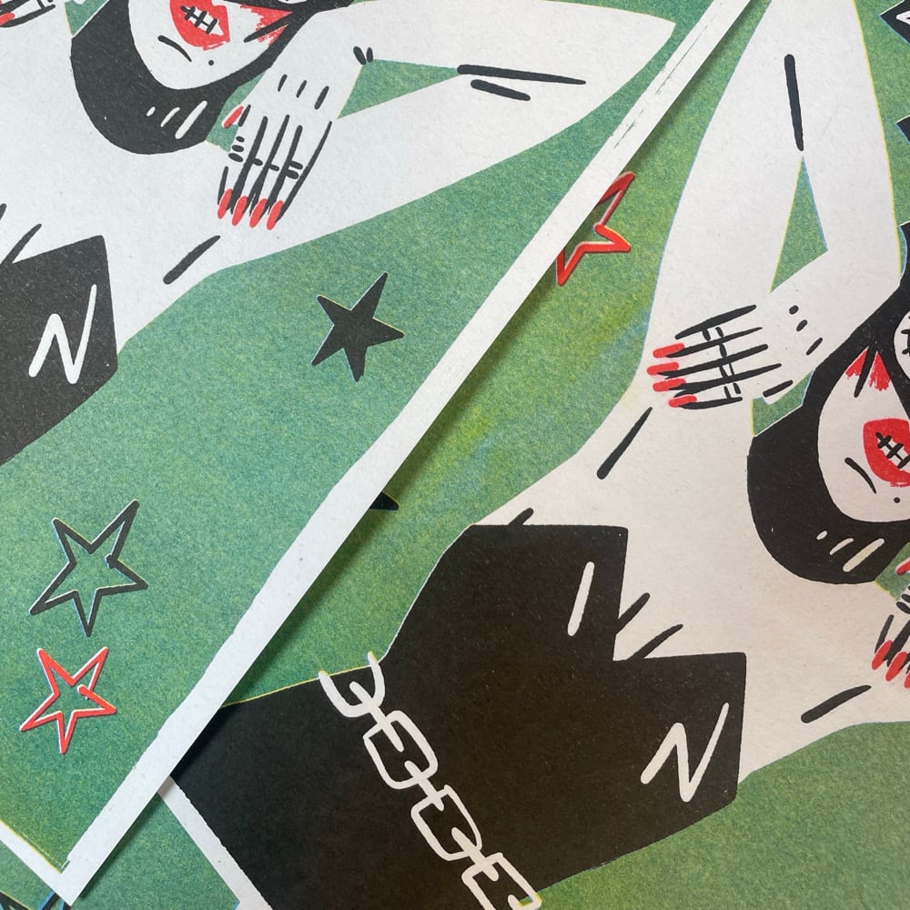 A4 risograph printed by Dopple Press in Brighton. This print involves a blend of colours so there will be some slight differences between prints! Looks coooool and makes em all a bit unique.